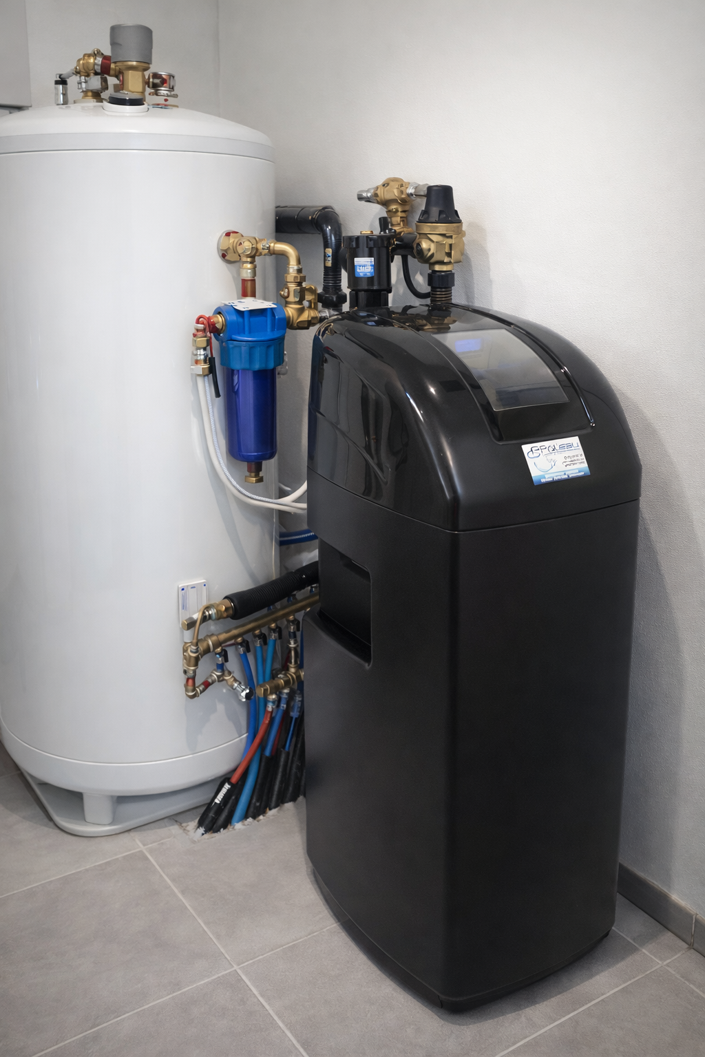 Équipé d’une double sécurité — by-pass intégré et vanne de mélange (mixing) — il protège efficacement votre installation et permet un réglage précis de la dureté de l’eau.